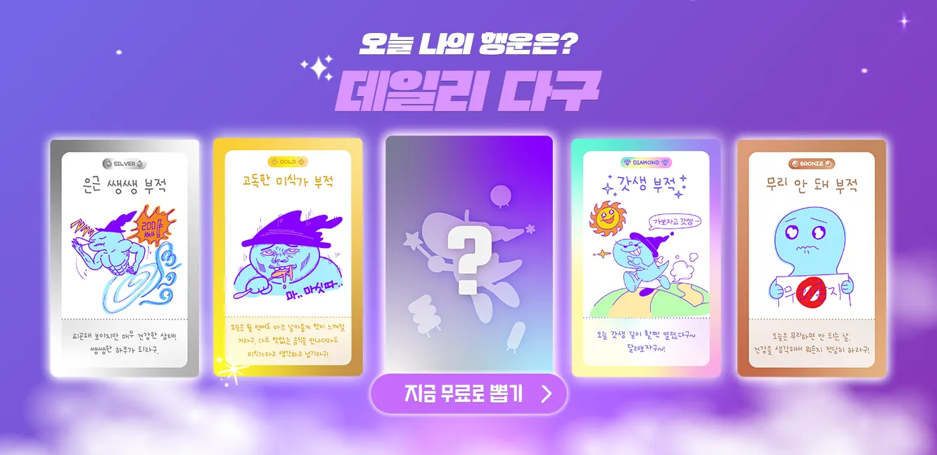 데일리 다구는 행운의 다구 부적을 뽑을 수 있는 기능이에요.